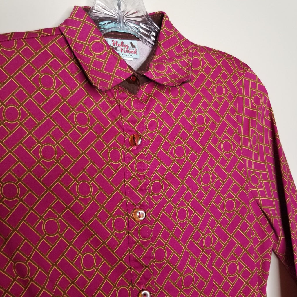 Haley & the Hound Pink Gold Button Up Collared Knee Length Dress Size 2