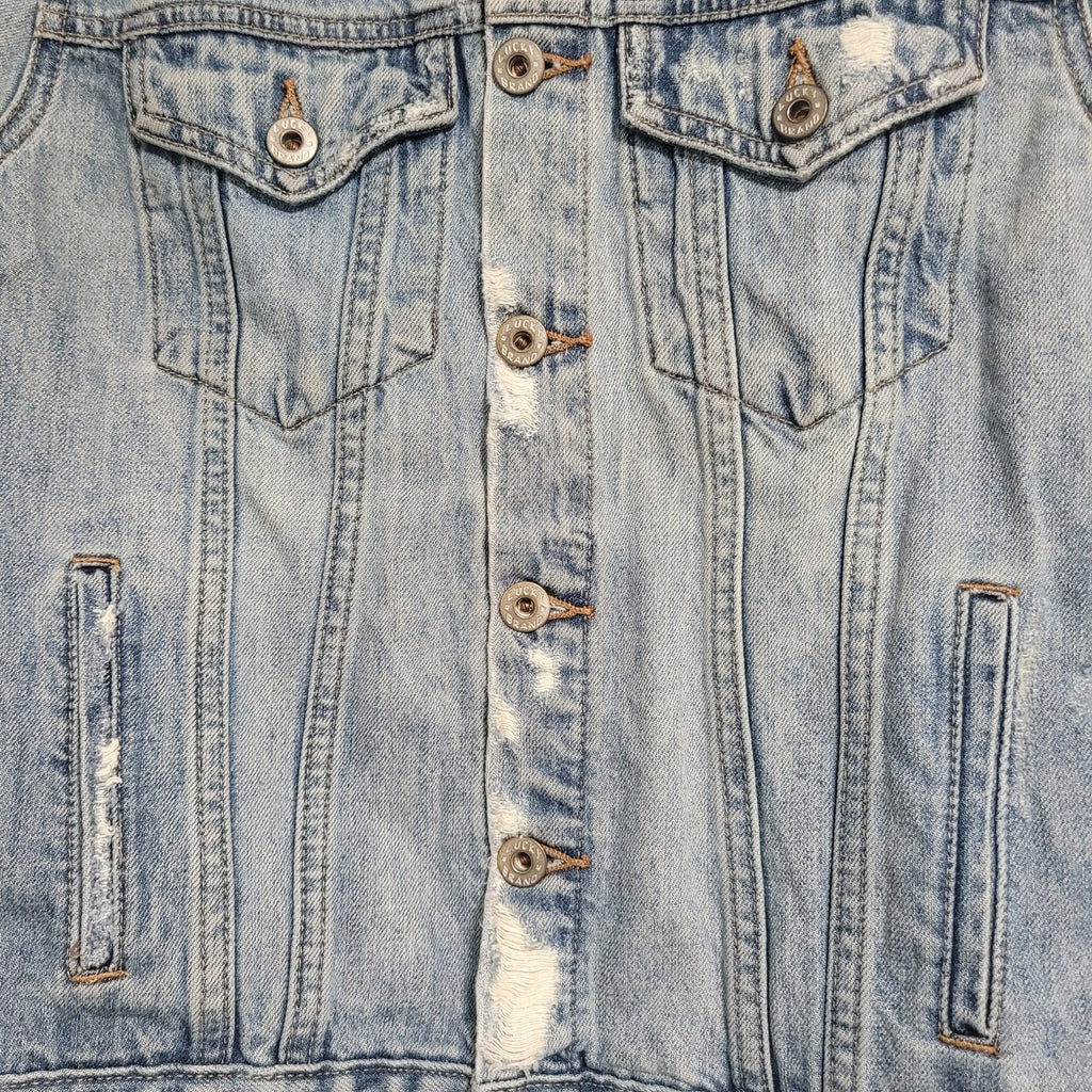 Lucky Brand The Tomboy Trucker Distressed Blue Jean Jacket Pockets Size Small