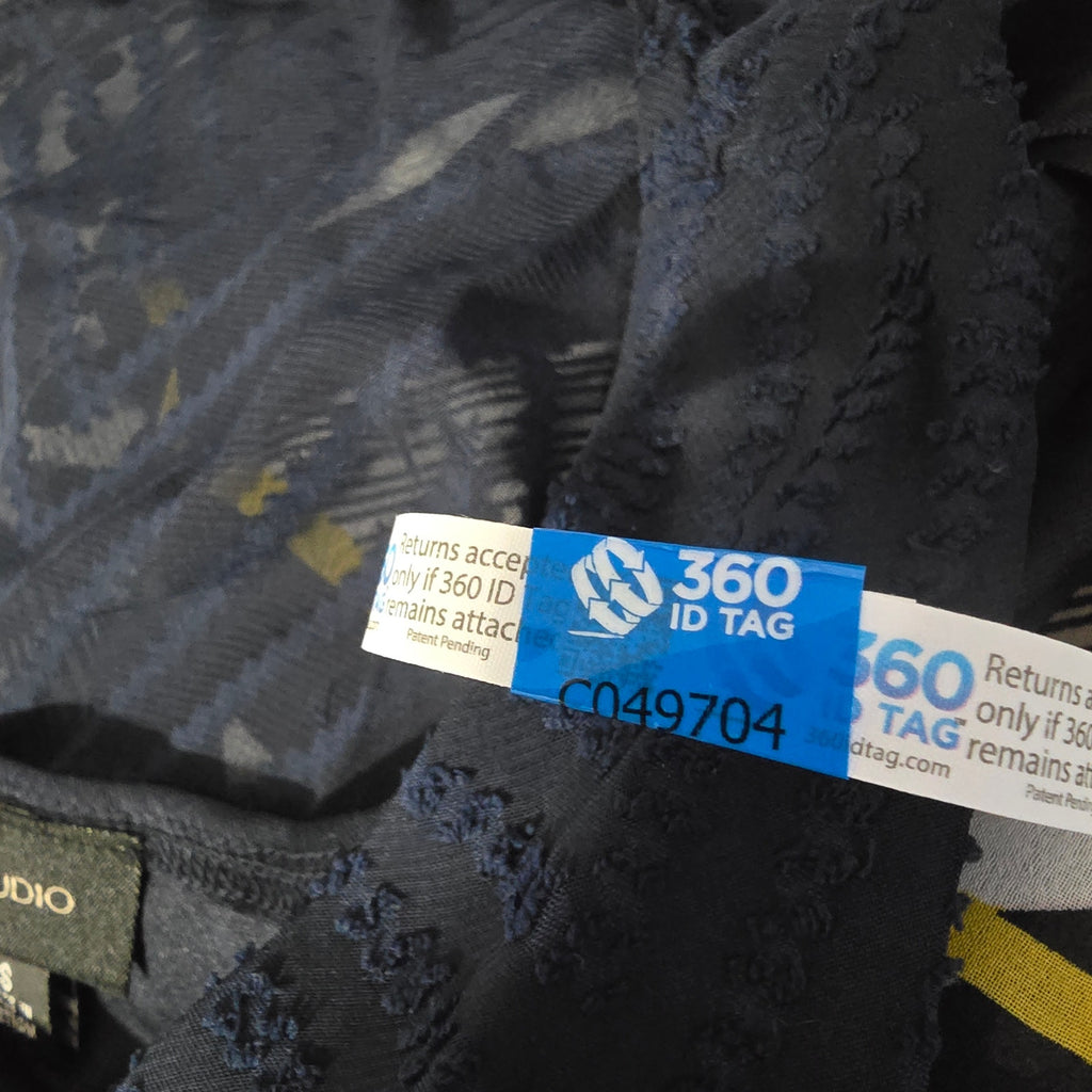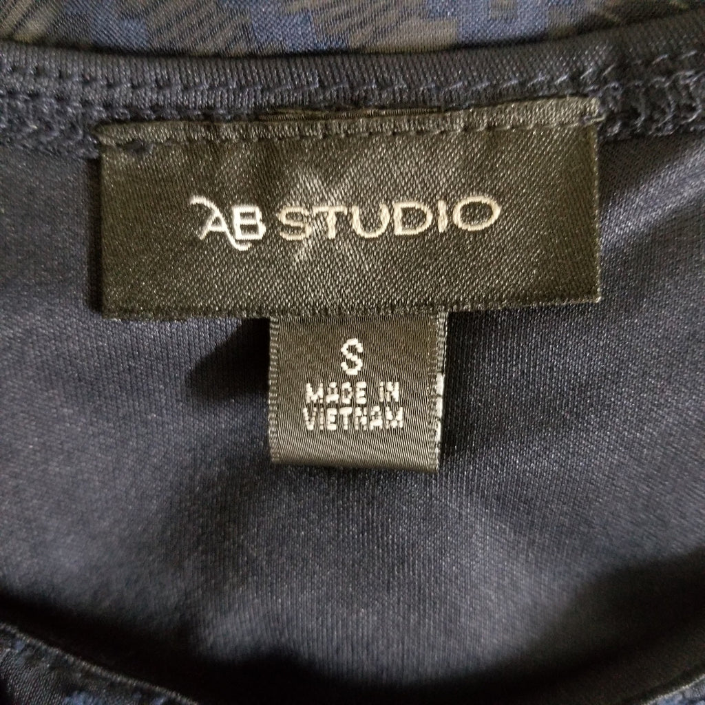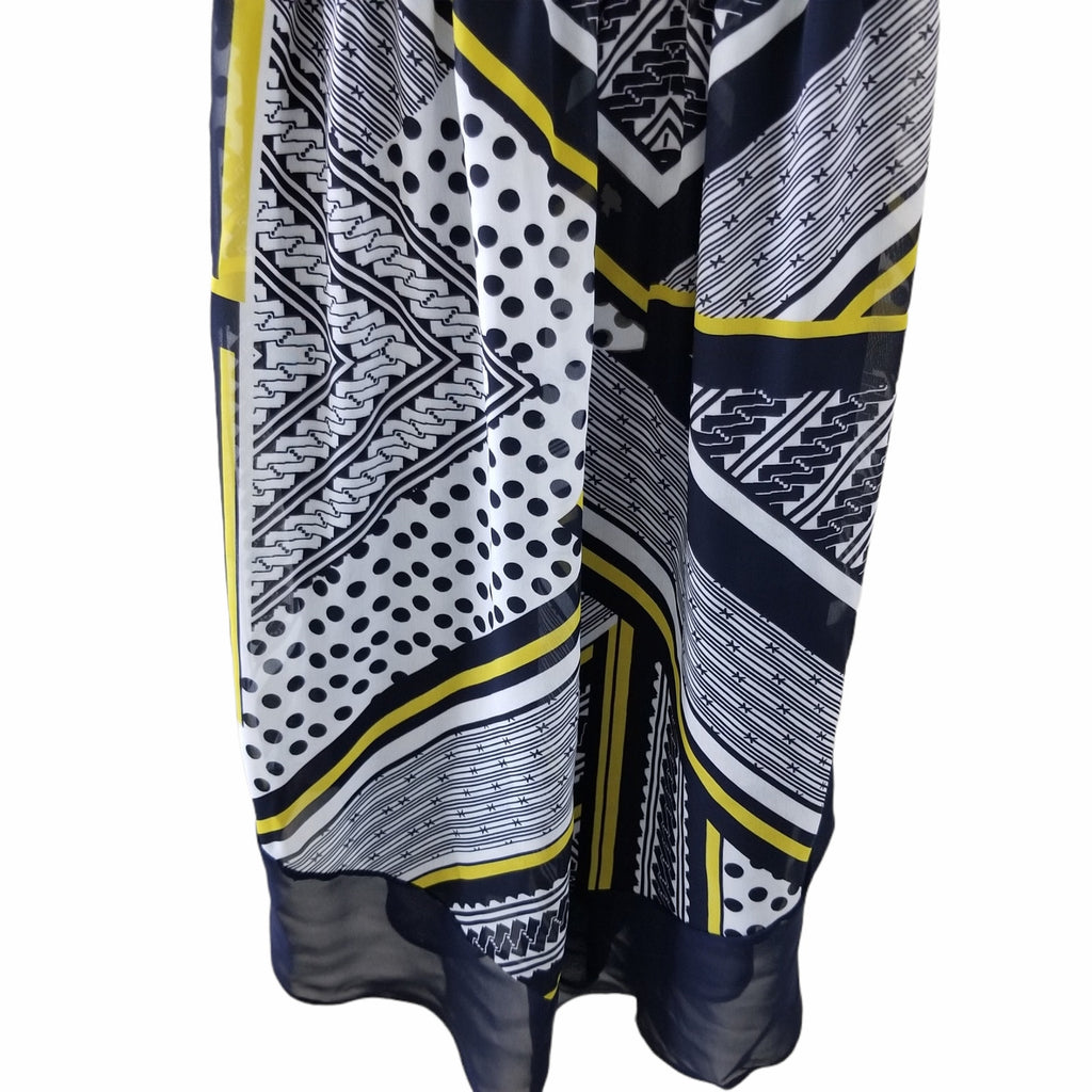 NWT, AB Studio, Navy Blue, Yellow, White, Belt, Sleeveless, Knee Length Dress, Size Small